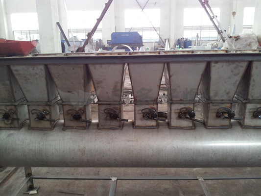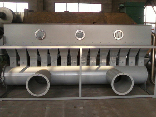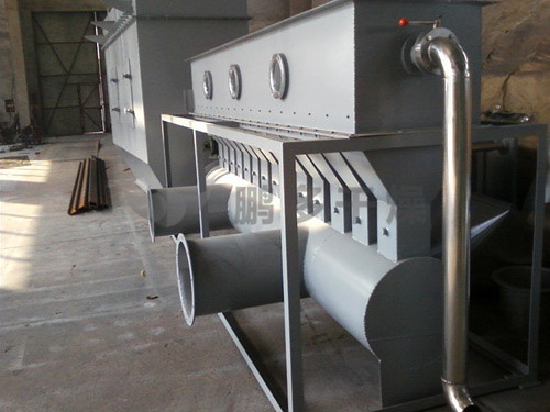 潔凈的熱風(fēng)經(jīng)閥板分配進(jìn)入床體內(nèi),從加料器進(jìn)入的濕物料被熱風(fēng)形成沸騰狀態(tài)。由于熱風(fēng)與物料廣泛接觸,增強(qiáng)了傳熱傳質(zhì)的過程,因此在較短時(shí)間內(nèi)就可干燥。如用連續(xù)型,物料從床體的一頭進(jìn)入,經(jīng)過幾十秒至幾分鐘沸騰干燥,自動(dòng)從床體另一頭流出。本設(shè)備一般進(jìn)行負(fù)壓操作。