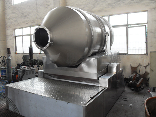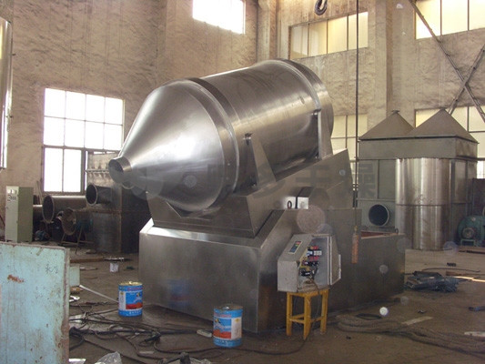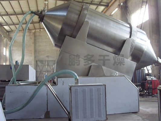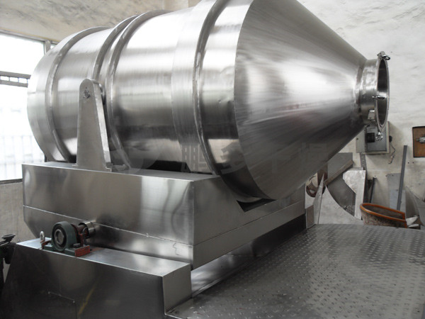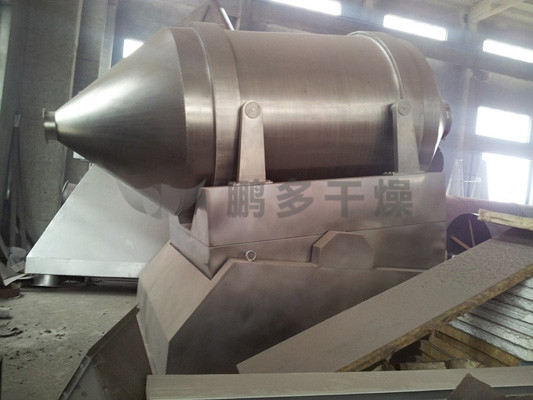 EYH二維混料機(jī)的轉(zhuǎn)筒可同時(shí)進(jìn)行二個(gè)運(yùn)動,一個(gè)為轉(zhuǎn)筒的轉(zhuǎn)動,另一個(gè)為轉(zhuǎn)筒隨擺動架的擺動。被混合物料在轉(zhuǎn)筒內(nèi)隨轉(zhuǎn)筒轉(zhuǎn)動、翻轉(zhuǎn)、混合的同時(shí),又隨轉(zhuǎn)筒的擺動而發(fā)生左右來回的摻混運(yùn)動,在這兩個(gè)運(yùn)動的共同作用下,物料在短時(shí)間內(nèi)得到充分的混合。EYH二維混料機(jī)適合所有粉、粒狀物料的混合。