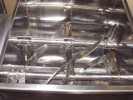 本機(jī)與物料接觸處均采用不銹鋼制造,槳葉與桶身間隙小,混合無死角,攪料軸兩端設(shè)有密封裝置,能防止物料外瀉。