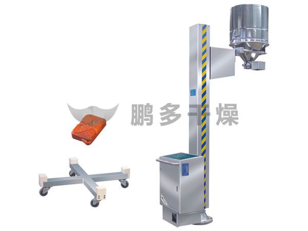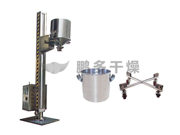 ??TJG 系列固定提升加料機(jī)由兩部分組成,即提升機(jī)及底座。提升機(jī)由機(jī)架、液壓提升系統(tǒng)及料門翻轉(zhuǎn)機(jī)構(gòu)組成。工作時(shí),先將提升機(jī)的料門與料桶扣合,啟動提升操作桿,料門與料桶一起上升,啟動翻轉(zhuǎn)操作桿,料桶即可番轉(zhuǎn)180度,呈底桶向上姿態(tài)并移動到所需位置,利用料門上出料蝶閥,可很容易將物料加入所需的工藝設(shè)備中。